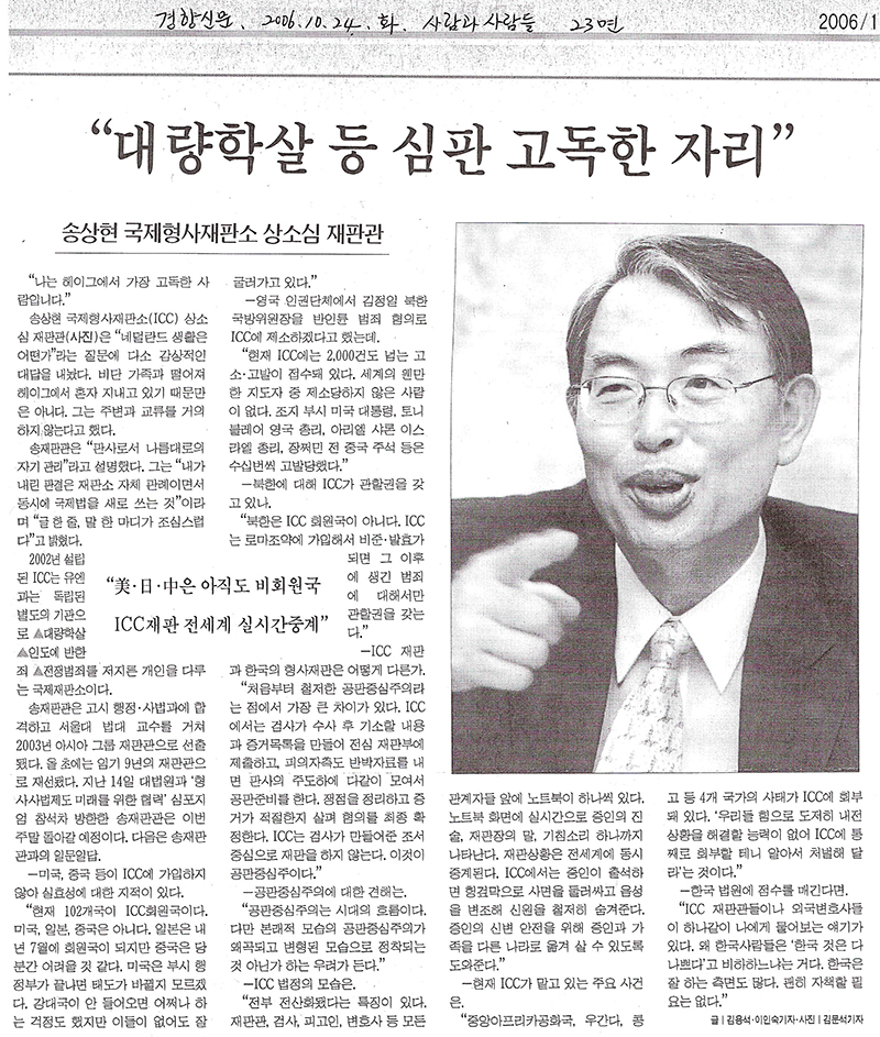 송상현 국제형사재판소 상소심 재판관-경향신문 인터뷰