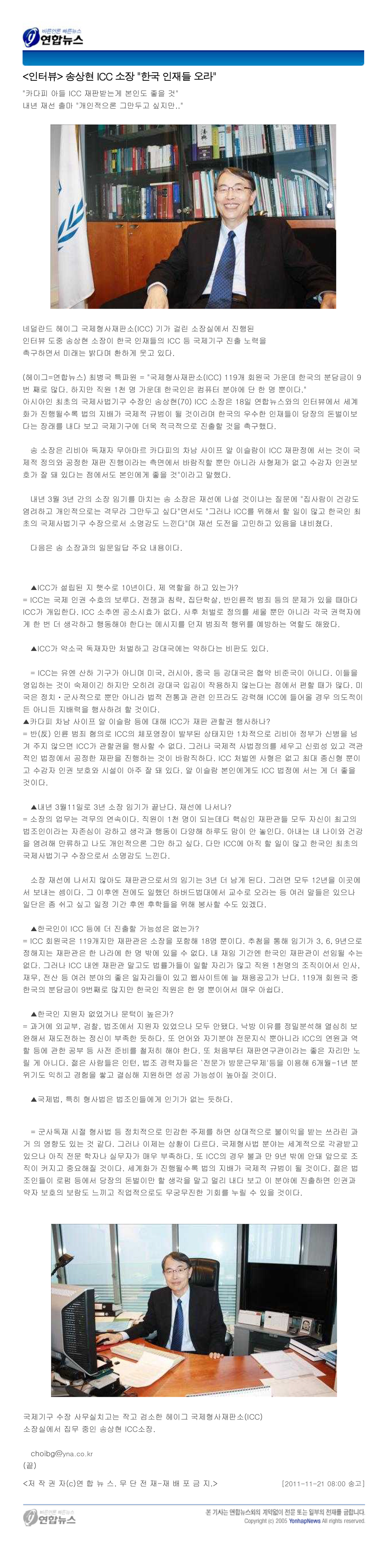 송상현 ICC소장 ‘한국인재들 오라’-연합뉴스 인터뷰