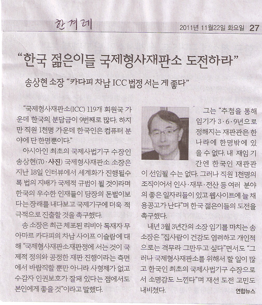 한국 젊은이들 국제형사재판소 도전하라-한겨레신문 인터뷰